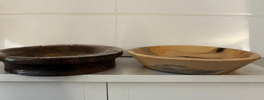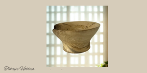 • Two wooden artisan home decor bowls with natural wood grain patterns from Today's Hobbies