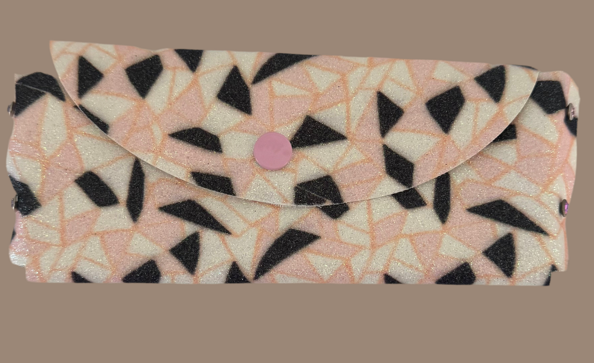 The colorful handmade glasses pouch comes in different eye-catching designs. The button closure keeps your glasses secure. Each pouch stands out with its handcrafted look. You can clip one to your bag or keep it in your pocket. It fits most eyeglasses and reading glasses easily.