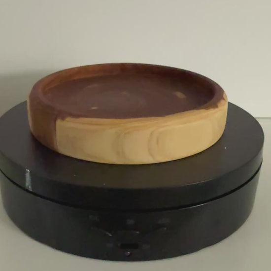 The circular wood tray in the collection is smooth and polished. Its natural grain adds subtle texture and beauty. It can hold jewelry, keys, or small decor objects. Each tray is one of a kind. Unique home decor gift ideas like this add both style and function to your home.
