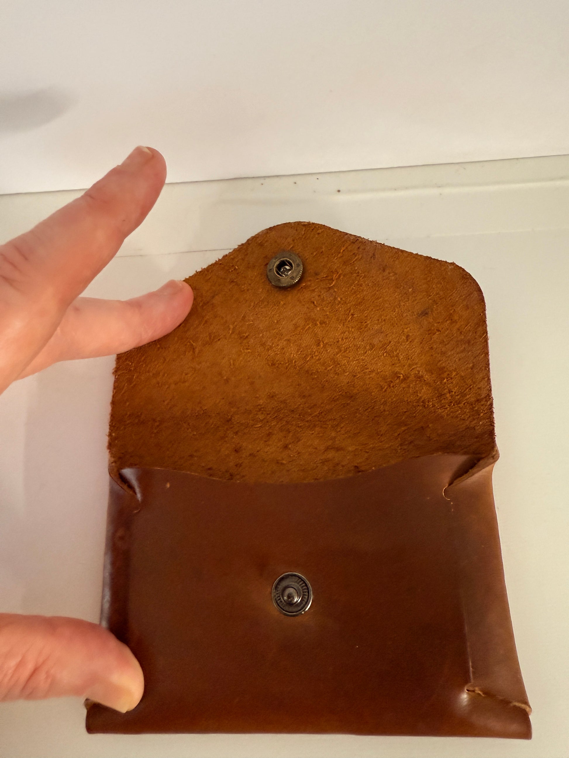 The wallet is handmade with care. It gives a sense of craft that stands out. You will notice the texture of the cow hide. This makes each piece special. The softness of the leather grows with time. The wallet fits in a small bag or even a pocket. You can carry cards, cash, and small essentials with comfort.