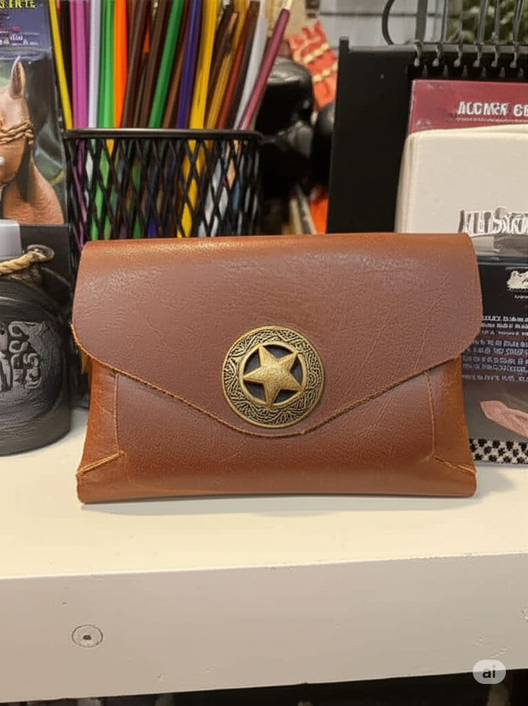 Discover true style with this Woman's Leather Wallet from Today’s Hobbies. This 100% cow hide wallet makes a perfect choice when searching for a unique leather gift for her. The design features genuine leather in a rich, deep brown shade. The metal star detail on the front brings an exclusive western charm to every day.